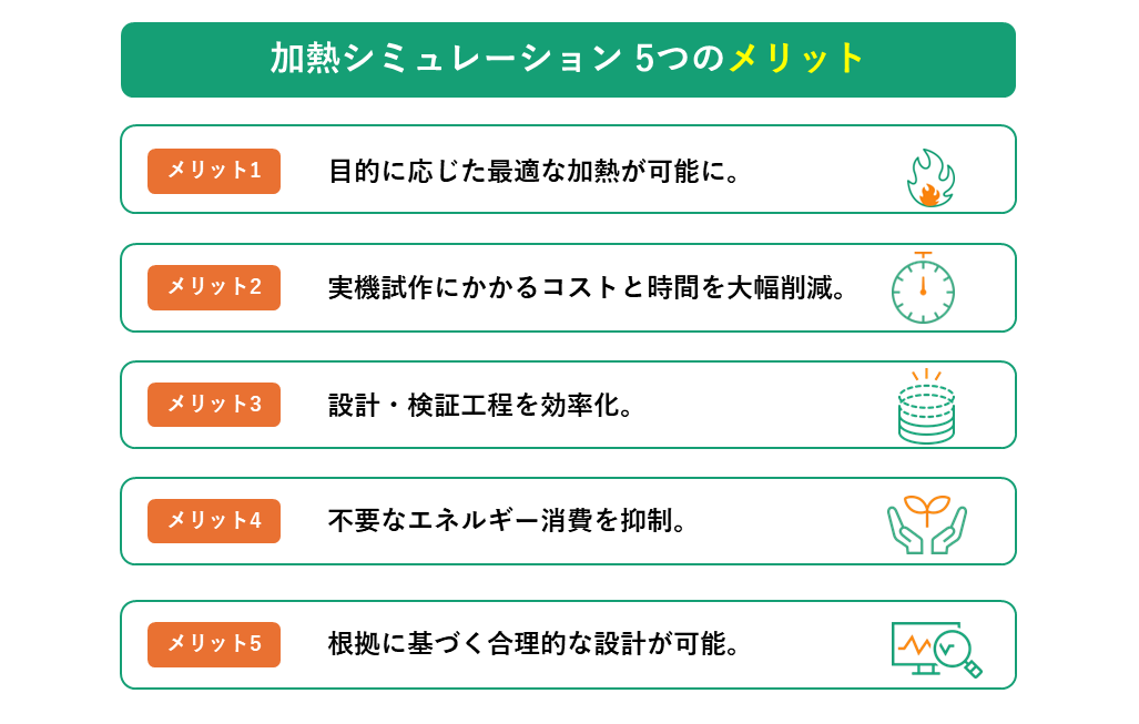 誘導加熱シミュレーションでは、コイルの設計、加熱条件、材料の物性変化を考慮して、被加熱物の正確な温度分布や発熱状況を予測できます。