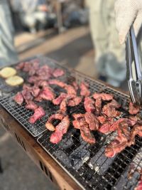 お天気に恵まれ、青空の下で炭火焼もできました。